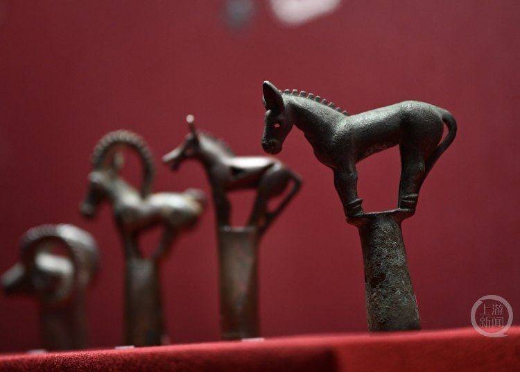 当然,草原文明与巴蜀地区之间的交流在本次展览中也有展现。王麒越介绍,团队特意将巴蜀地区出土的环首刀、虎纽錞于等器物,与北方草原典型器物并置进行展示,就是希望观众可以看到器物形制与文化因素在不同区域间的传播路径。