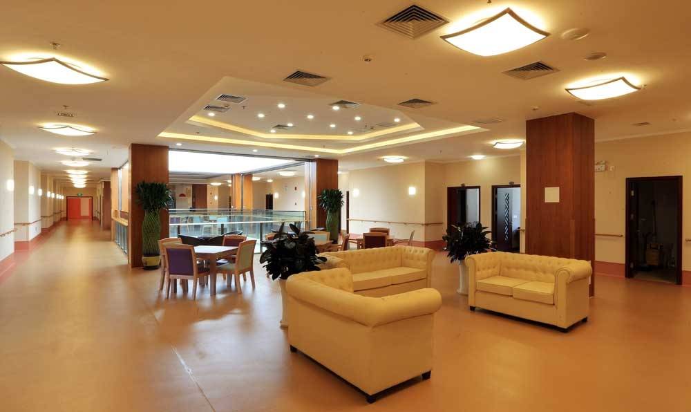 占地20000平米,建筑面积46650平米,规模庞大,设施完善。楼内配备空调、24小时生活热水、供氧、呼叫、消防报警、安保监控、防雷击等全方位系统设备,为长辈居住安全提供坚实保障;阳光休闲大厅、餐厅等辅助设施齐全,满足日常起居需求。楼层内设有共享观景空间、阅览室、书画室、棋牌室、沙壶球室、手工艺室、健身房、情景小屋、心晴小屋、网吧和多功能厅等多个文娱活动场所,丰富长辈精神文化生活。
