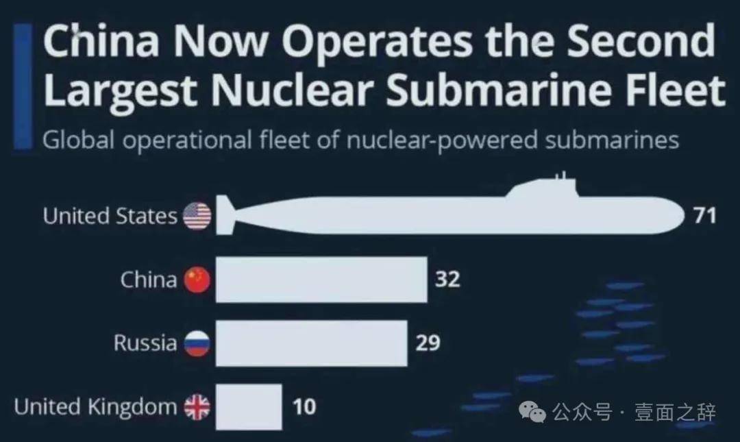 西方权威军事机构最新评估报告显示,中国现役核潜艇数量已达32艘,首次超过29艘的俄罗斯,跃居全球第二、仅次于美国。很多人不解,数量多几艘而已,意义何在?